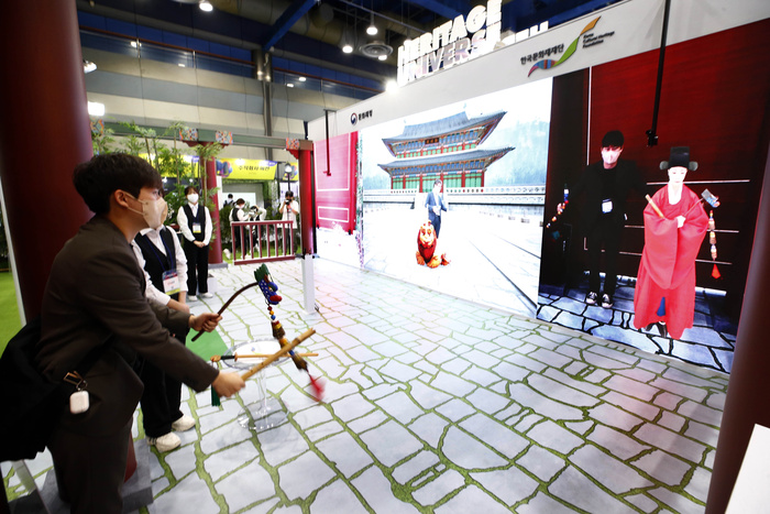 Interactive LED wall installation for K-Metaverse Festival & Expo 2022 visitors. Experience-based media art that composites visitors with cultural heritage volumetric content in real-time and displays on large LED screens.