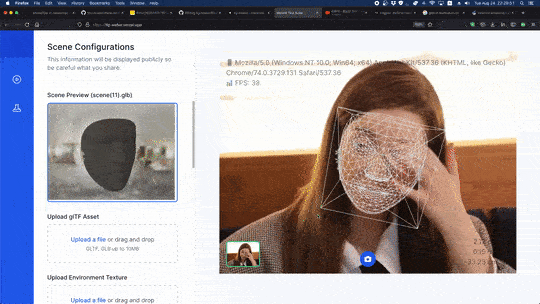 Developed web-based asset loading with accurate mapping between face recognition results and 3D objects. Real-time material and physics property testing environment.