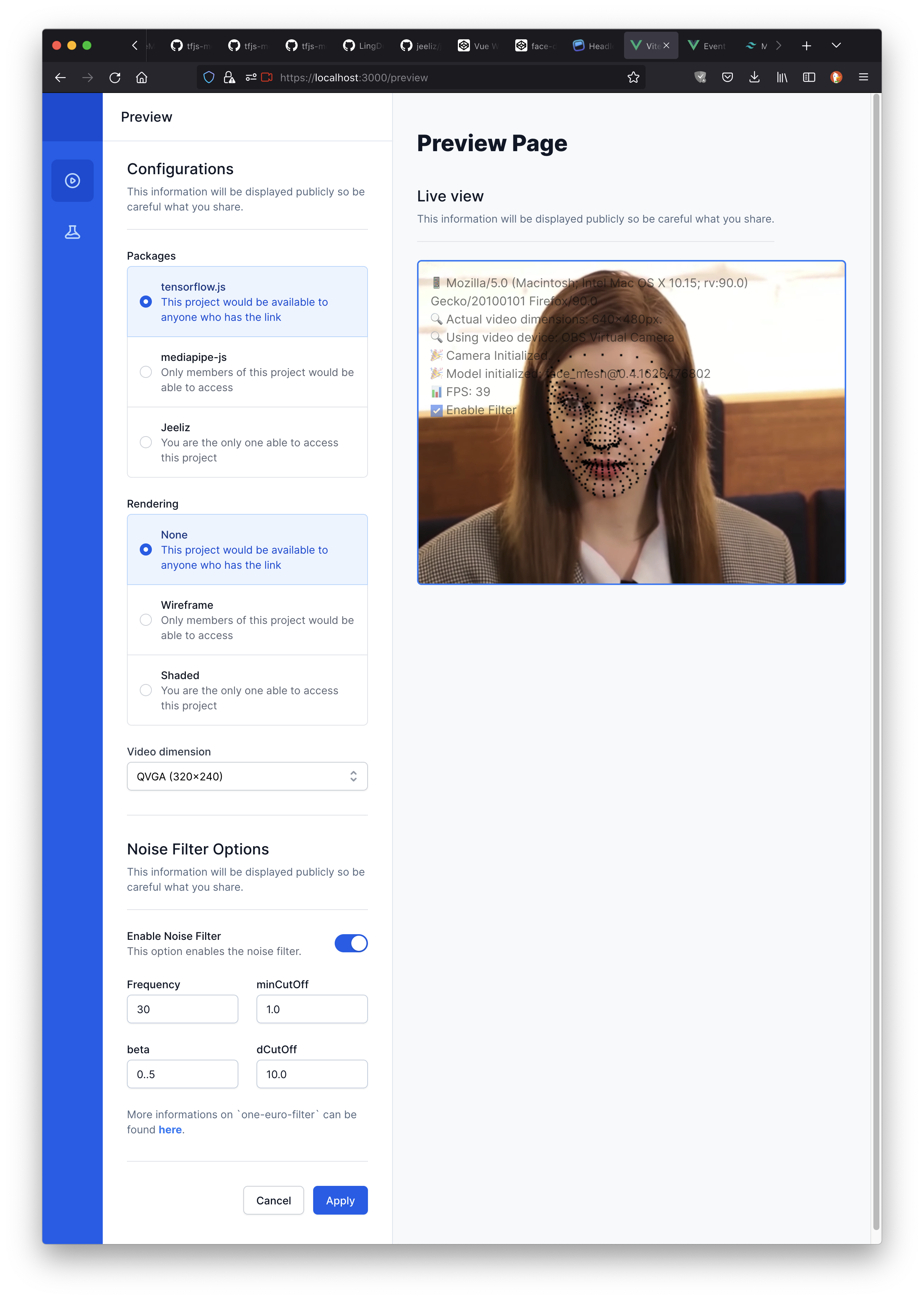 - Custom MediaPipe C++ pipeline with WASM compilation
